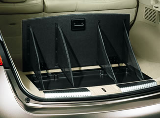 Orderly conduct.Wellbehaved cargo is a snap with the push button pop-up cargo divider*. For even greater flexibility, the divider’s lid snaps into place to create a separate cargo area between the rear seats and storage bins. Two removable nets create up to three separate storage bins in the back, while easy-toclean flooring means even muddy gear is welcome.
