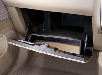 Large glove box has enough room to accommodate a variety of items.
