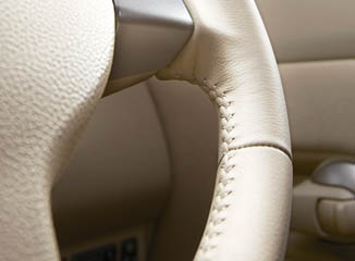The beautifully stitched leather-wrapped steering wheel fits your hands, reflecting the fine craftsmanship of the interior.